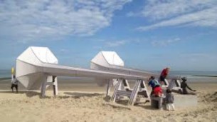 Ce toboggan adossé au perret de la digue de Middelkerke, en Belgique, allie simplicité et efficacité. Il fallait juste y penser !
