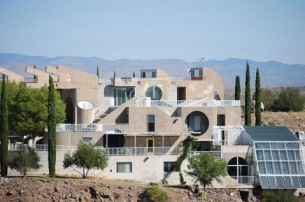 Arcosanti est une cité utopiste bâtie en plein cœur du désert de l’Arizona prévue pour accueillir plus de 5 000 âmes. Son concepteur, Paolo Soleri, avait imaginé des superstructures d’habitat condensés qui allaient rendre inutile l’usage de la voiture. La production agricole intégrée permettant de faire vivre de façon quasi autonome les habitants. On y trouve également des innovations poétiques : un béton pigmenté dont la couleur se fond avec celle du sable du désert, des arches en demi-lune qui absorbent la chaleur et atténuent les effets d’un climat rigoureux. Malgré les déboires et les illusions – Arcosanti compte à ce jour une cinquantaine d’habitants – la cité rescapée de l’âge hippie dénonce des problèmes devenus pressants et immédiatement évidents.