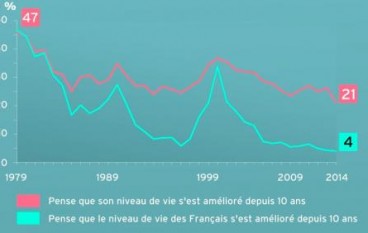 Seuls 4% des Français pensent que leur niveau de vie s'est amélioré depuis dix ans... Ils sont 21% à penser le contraire... 13 novembre 2015