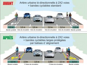 Le double-sens cyclable.- A instaurer dans une rue à sens unique où la vitesse est de 30km/h maximum.